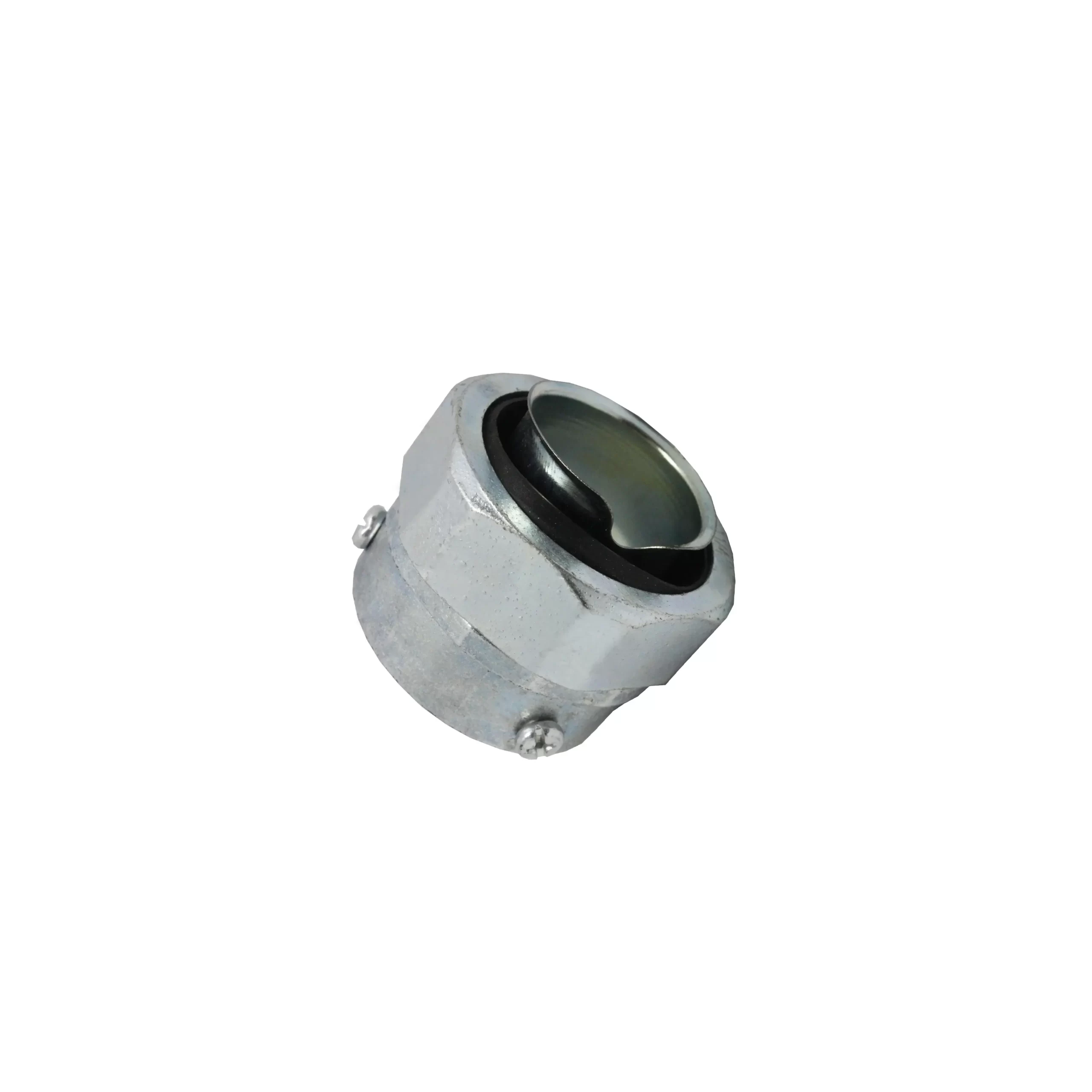 DV Coupling Screw DKJ is made from high quality galvanized die cast zinc. It has isolator on the connection parts to flexible hose and screw on the connection to conduit pipe.