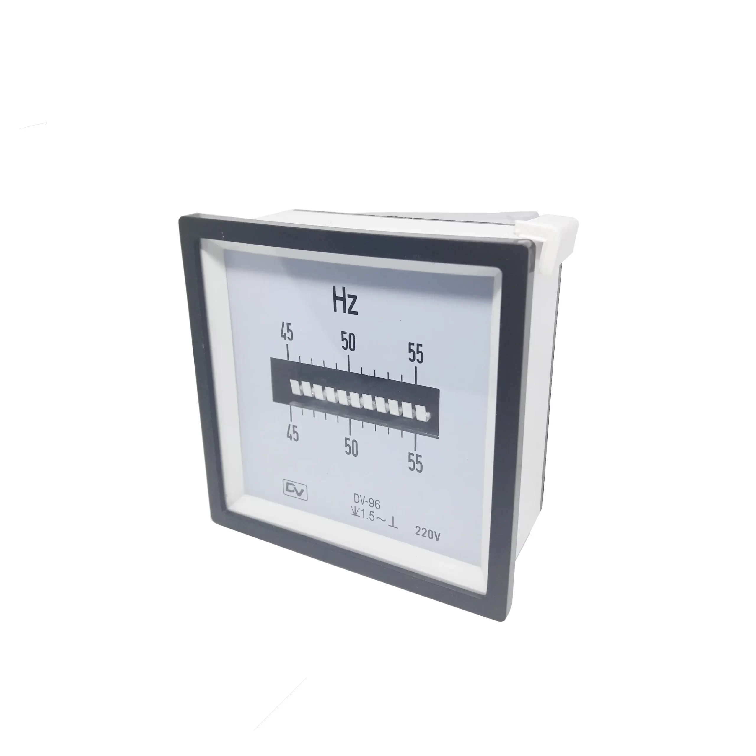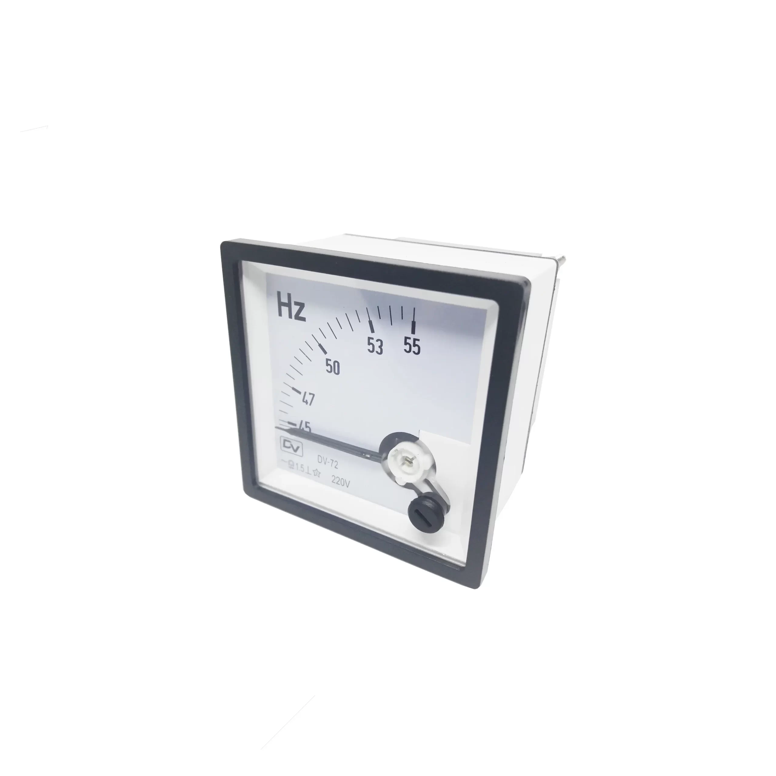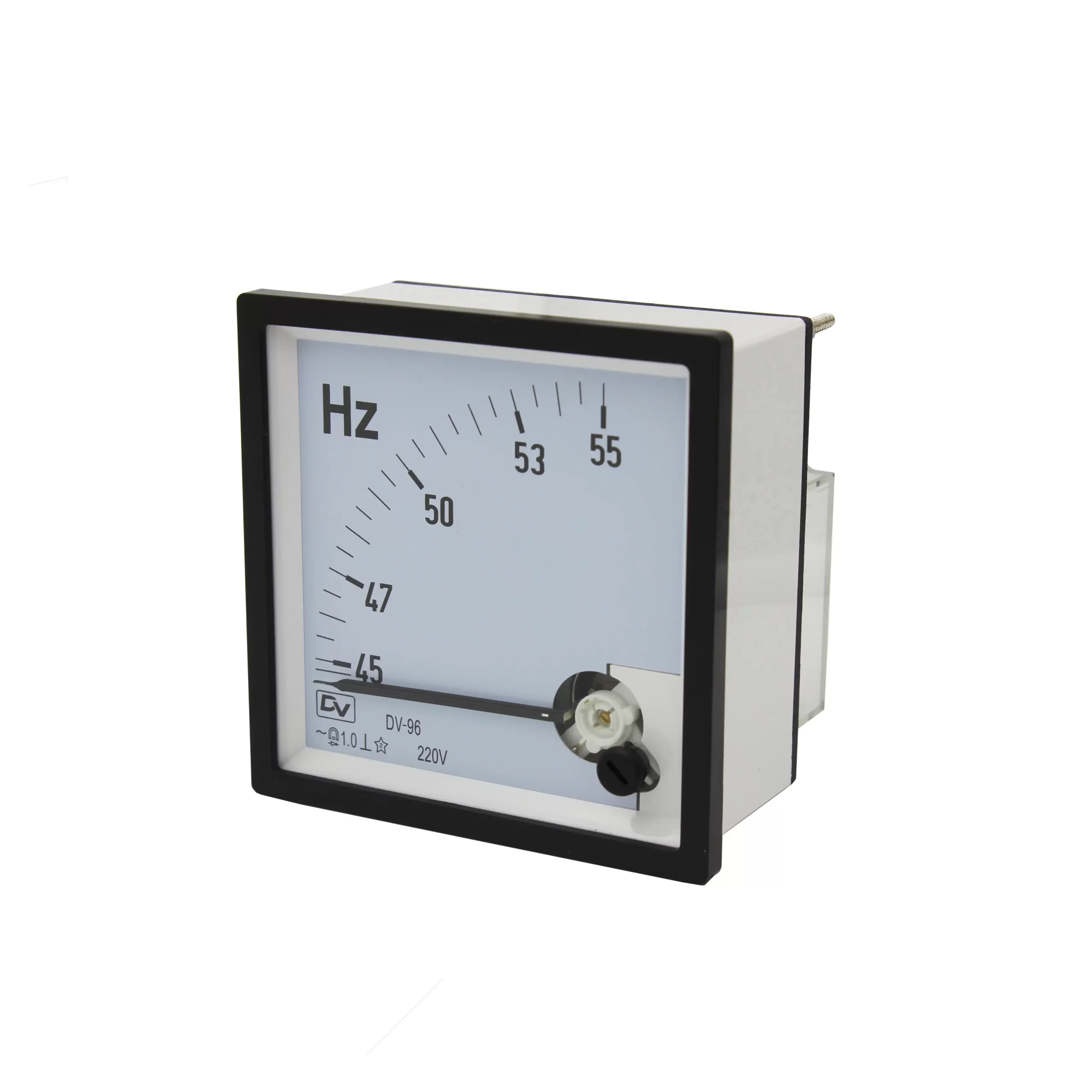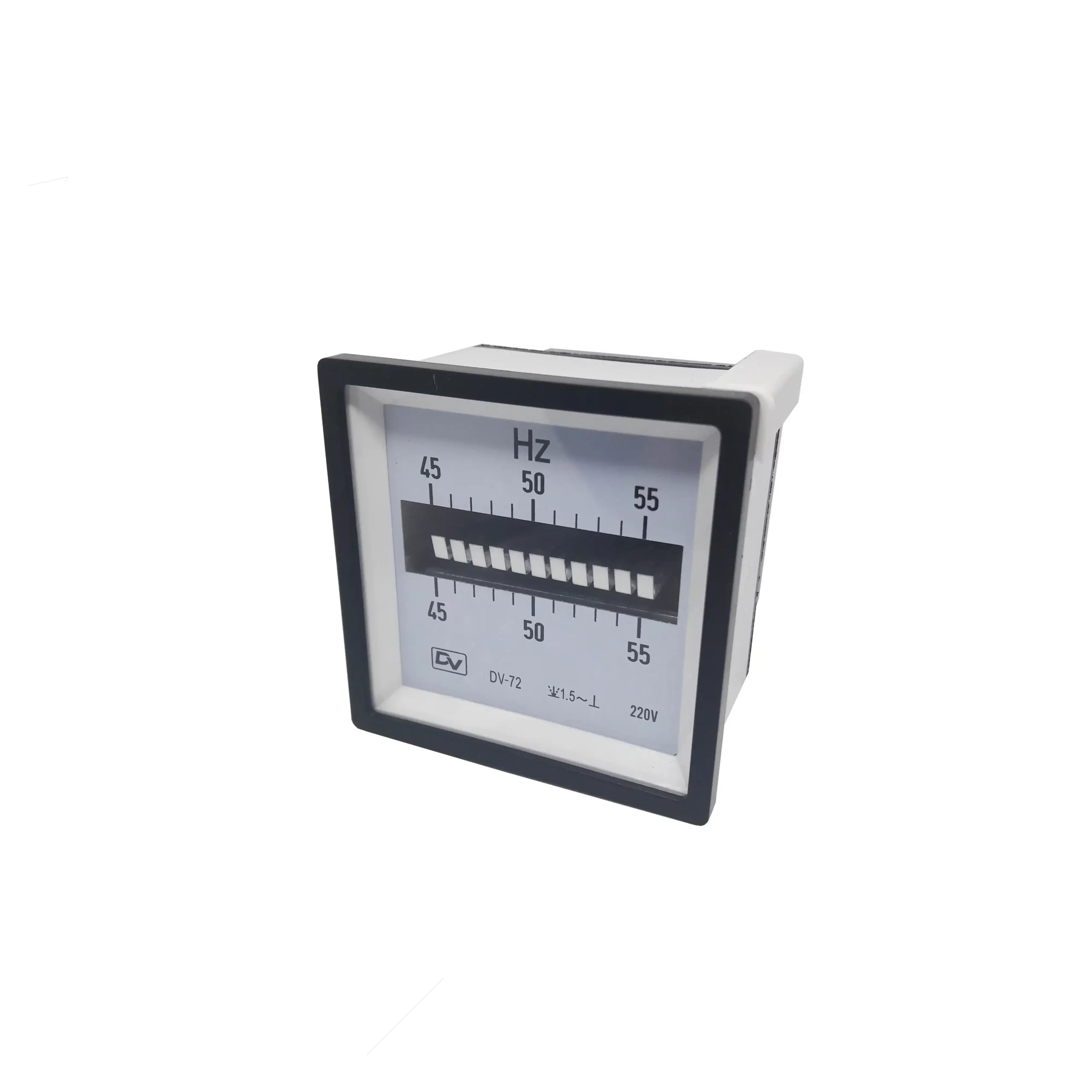 DV Frequency Meter memiliki 2 jenis ukuran mounting 72x72mm dan 96x96mm dan model pembacaan jarum penunjuk (pointer) dan jarum getar (vibrate). DV Frequency Meter dengan harga terjangkau dan akurasi yang baik, pilihan tepat untuk instalasi panel listrik yang ekonomis.
