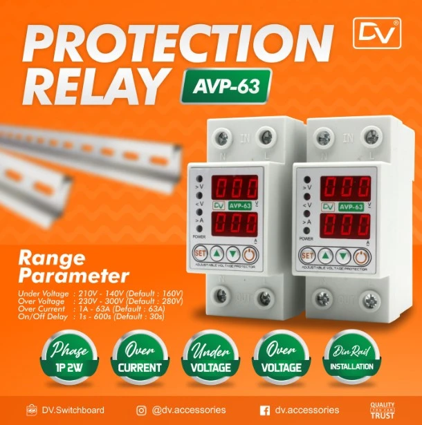Range Parameter Under Voltage : 210V - 140V (Default : 160) Over Voltage : 230V - 300V (Default : 280) Over Current : 1A - 6...