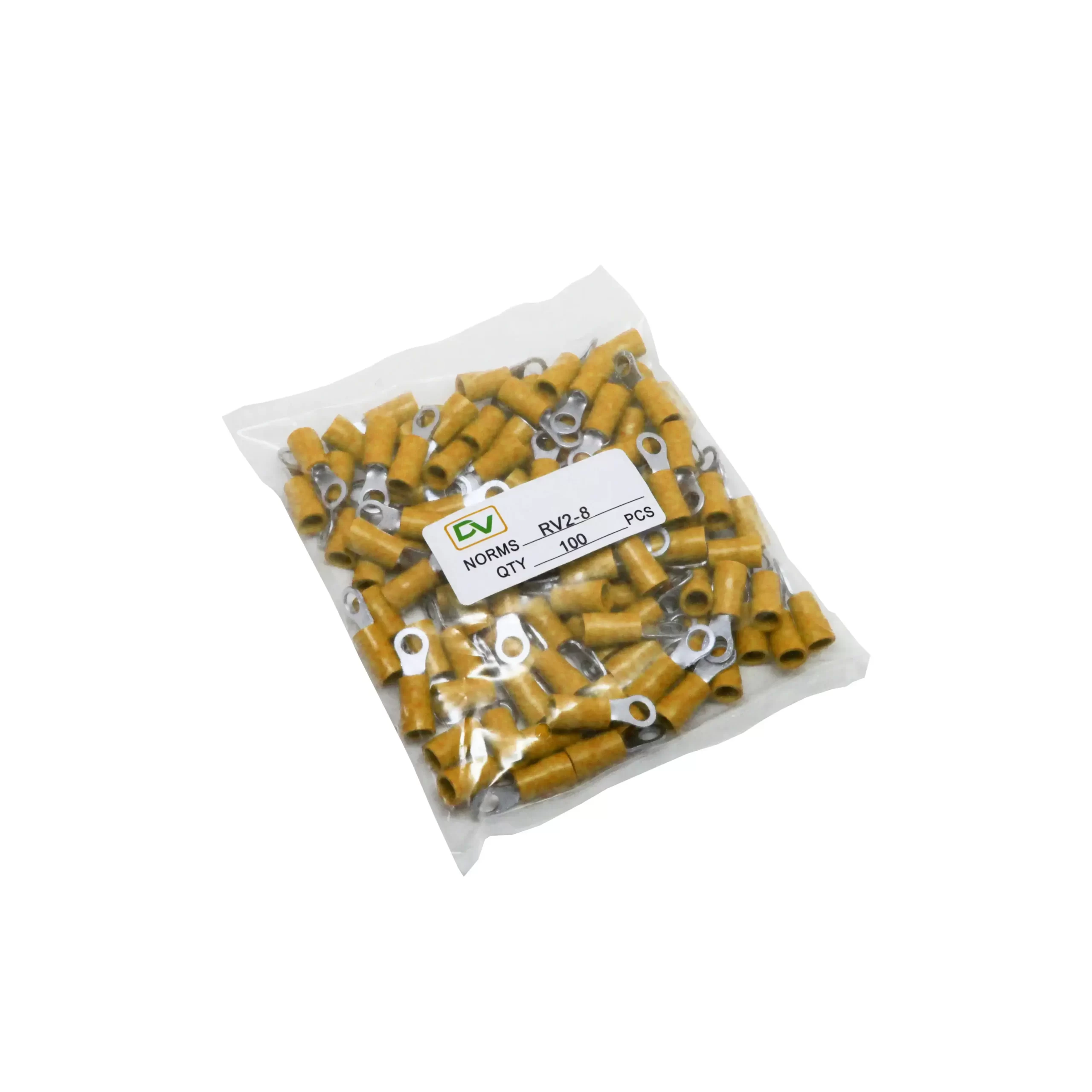 DV Ring Terminal is made of 99.95% pure copper that has been galvanized and zinc coated to make it more durable while still conducting current well. DV cable lugs are not easily broken when crimped.